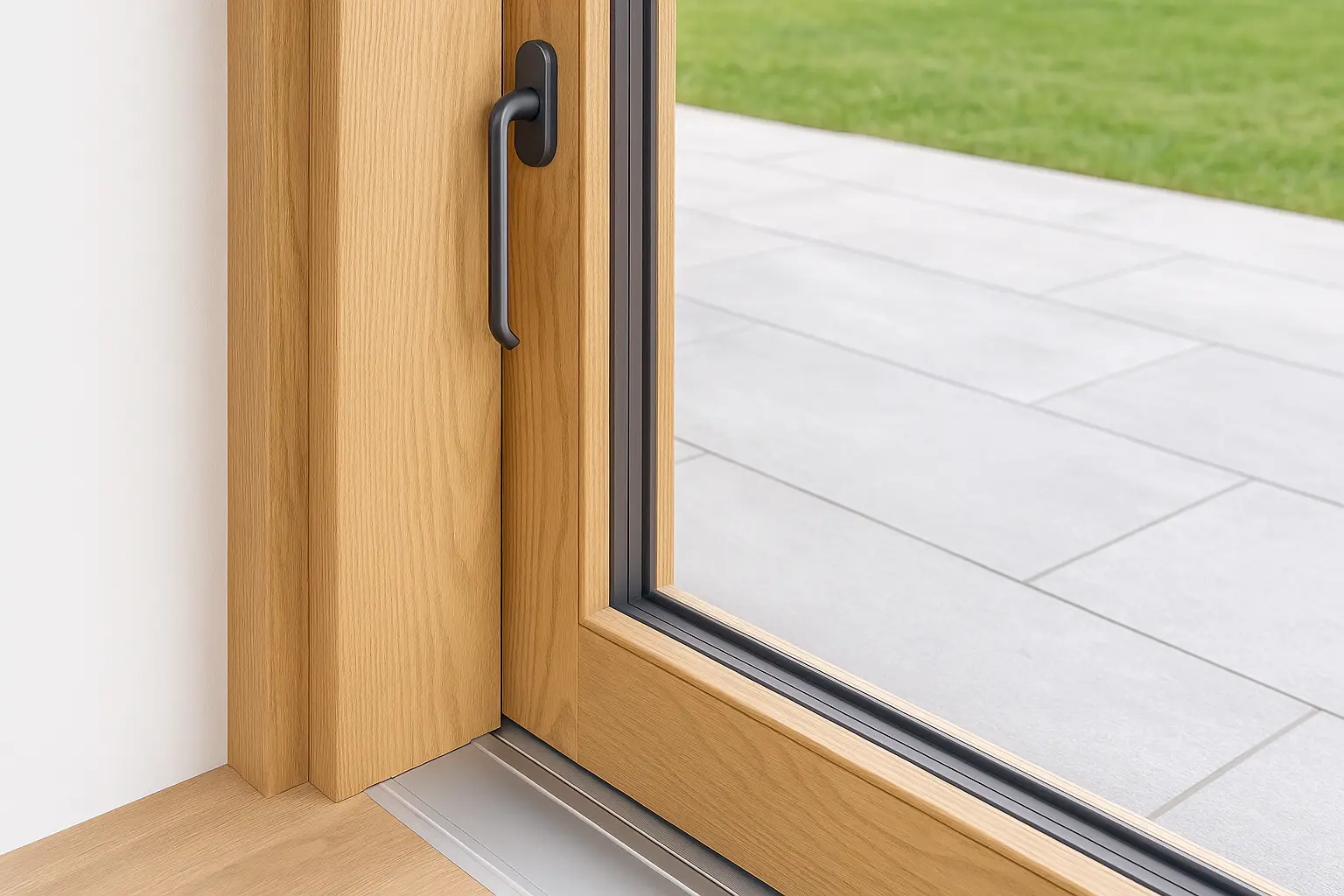 Solo legno e immagine: la ferramenta scompare nel telaio. La guida di scorrimento viene incassata nel telaio per nascondere alla vista ogni elemento funzionale.